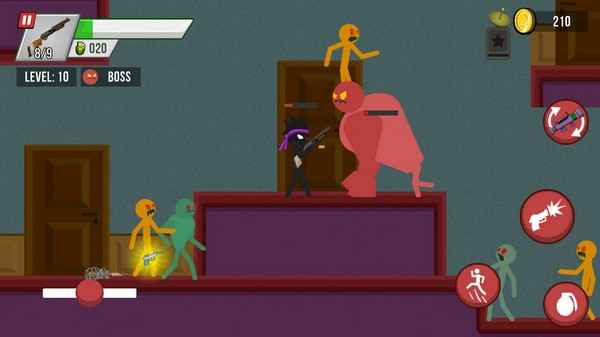 火柴人僵尸射击游戏是一款简单有趣的闯关射击游戏。在这款游戏中玩家可以使用枪械武器发射子弹消灭迎面袭来的僵尸们,突破僵尸的重重包围去搜索关卡场景中隐藏的宝藏。游戏的操作方法很简单,滑动虚拟摇杆就能够控制人物的走向,点击开火即可射击。此外,这款软件还可双人联机闯关,与好友一同游玩。