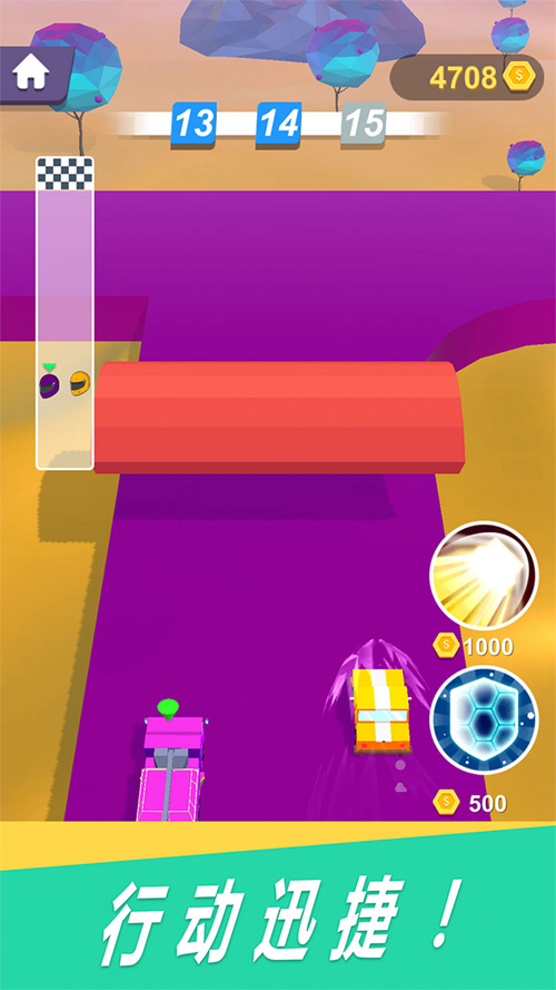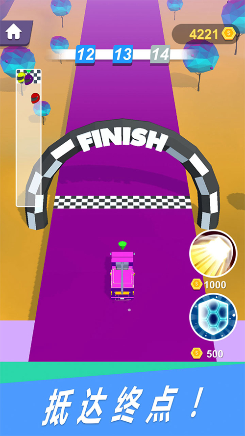 7.按住屏幕汽车就能发动了,接下来让我们狂飙起来,以惊艳的表现完成比赛吧!