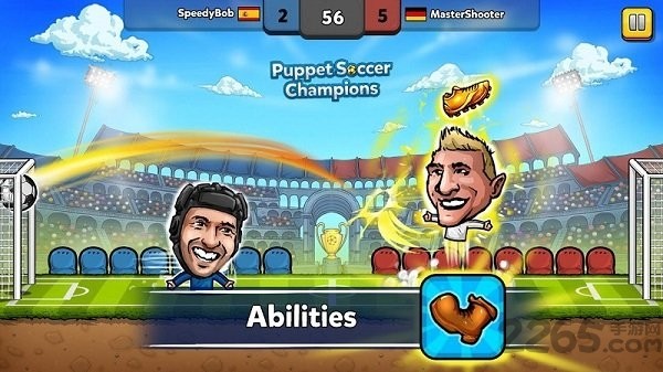 2、操控球员竞技:操控傀儡球员进行跳跃与射门操作,在横版赛场中与对手展开对抗,把握时机将足球射入对方球门得分。