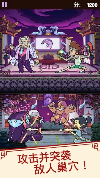 1、击败暗影尖牙帮,在进阶式对战游戏《功夫圣手》中训练你的学生们成为英雄!