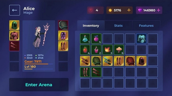 这个游戏是一个横版闯关手游,名字叫爱丽丝:月光竞技场内购破解版。你可以控制不同的角色在月光竞技场上冒险,还能搜集装备提升战斗力。最酷的是这个版本已经破解了钻石系统,所以你可以无限使用宝石进行内购,再也不用担心没钱升级。