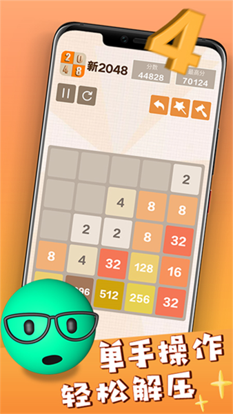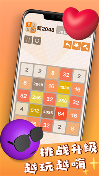 新2048是一款简单有趣的2048数字手游,玩家只需要在游戏里上下左右滑动屏幕,使数字最后叠加到2048就能获得胜利。游戏玩法丰富,每把都有不同的道具可以使用,大大减低了游戏的难度。游戏的画面流畅保障了玩家的游戏体验感,玩家不用担心游戏卡顿导致对局失败。为了满足大神玩家的需求,游戏开放无尽模式,玩家只要时间充足就可以一直玩下去。