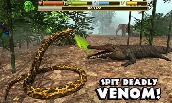 游戏里有24种不同的丛林生物,玩法多样。你可以用各种技能捕捉猎物,还能解锁新皮肤和能力,感觉自己就是一条“蛇王”。特别喜欢它的战斗系统,用毒液或者催眠技能击退敌人,感觉超酷!而且画面很震撼,3D效果让整个丛林看起来真实极了。