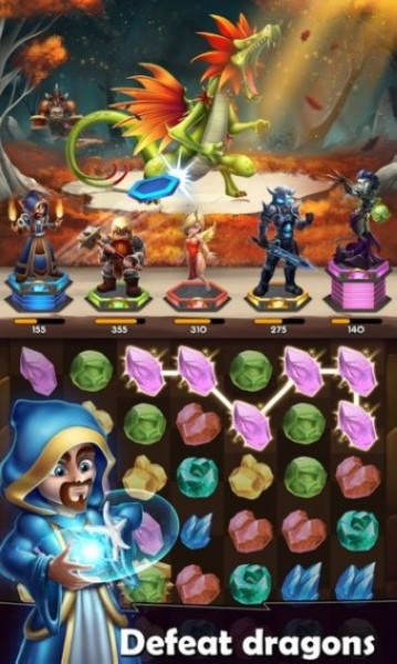 龙与钻石是一款连线消除游戏,玩家将相邻的同色宝石相连,消除之后对敌人造成伤害。