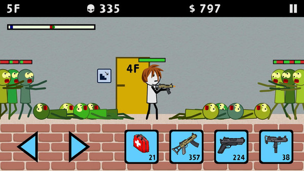 僵尸杀手游戏是一款十分刺激的横版射击类手游,游戏的画面虽然不是那么精致,但是光凭这玩法还是值得一试的。游戏中我们需要使用强力的枪械武器来击败从左右不断袭来的丧尸,并用搜刮的金钱来购买更多物资。通过不断移动来和丧尸们拉开距离,生命值较低时可以使用急救箱进行恢复。这里有超多不同的武器可以选择,并且还有多名强力英雄角色可以解锁。选择你的火柴人战士并与成群的危险怪物作战以求生存。