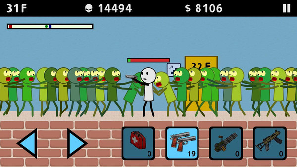 一旦你准备好战斗,选择一把枪装备你的火柴人并准备僵尸攻击!