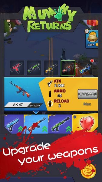 3.通过击杀僵尸获得的金钱升级自己的武器,使自己不断的强大起来。
