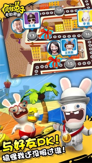 疯狂兔子无敌跑跑中文版是一款非常刺激好玩的休闲跑酷题材手游,该游戏是以疯狂兔子为背景的,采用了卡通的画风,在这里玩家将控制兔子不断的进行跑酷,同时在跑酷的过程中还可以收集沿途中的金币等,此外还有着各种道具来帮助玩家进行跑酷,让大家可以更加轻松的通过每一个关卡,也能更好的享受到跑酷的极致乐趣。