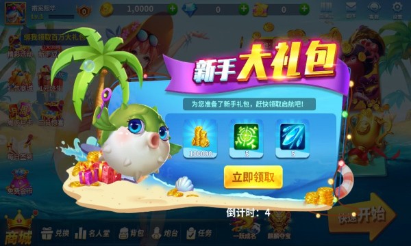 3、玩家开炮捕鱼还能领取新手专属礼包,赢取千万金币。