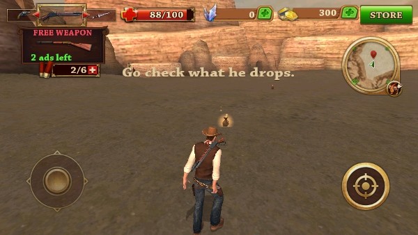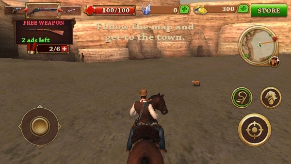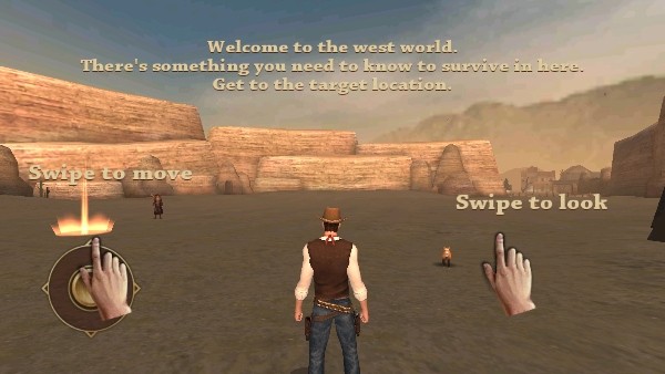 2、滑动屏幕,移动视角及控制牛仔行走方向。