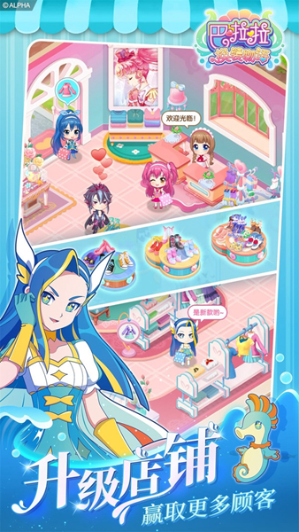 -每天都能自由搭配装扮,感受人来人往的店铺,提高收益,成为最美的小魔仙,画风优质,精美的特效。