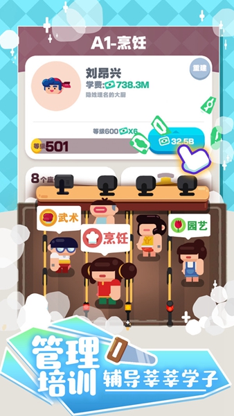 我的培训学校游戏破解版是一款非常欢乐的模拟经营类手游,玩家可以在这里经营一所培训学校,招募具备各种技能的导师,然后还可以去各种地方打广告来招募学生。教师的薪水是由玩家来制定的,但如果不合理的话可是会离职的哦。在教育的过程中当然也是会发生很多事件的,需要玩家亲自去进行处理。此外还能举办很多有趣的活动让学生们参加。游戏音乐欢快轻松不会让玩家感受到无聊感。