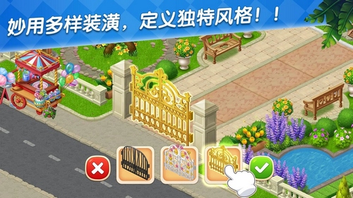 你就是一家之主,一切你说了算! 利用不同建筑、庄园和别墅设计你心目中最美的风景,并用各种树木、花朵和花园为它们锦上添花!