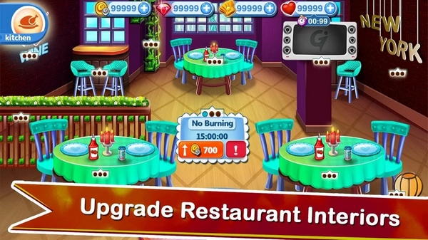 -在订购游戏中升级食物,厨具,室内和名人厨师的着装,以快速通过关卡!