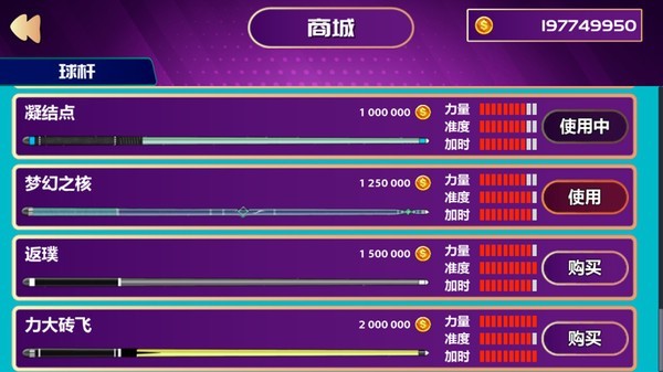 完成挑战就可以解锁球杆,开启更有趣的台球之旅,打造个人专属的球杆
