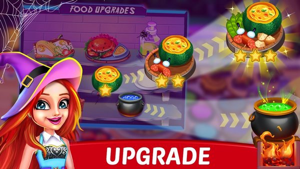 万圣节烹饪是一款超好玩的美食模拟经营手游!游戏中你扮演大厨,在万圣节主题下制作各种奇怪又有趣的美食,比如平底锅蛋糕、恐怖食谱什么的,玩法特别有趣,还能解锁很多成就和奖励。游戏里有75多种特色美食,16+辆不同的卡车,800多个关卡,场景设计得很精美,画风卡通又有节日氛围。