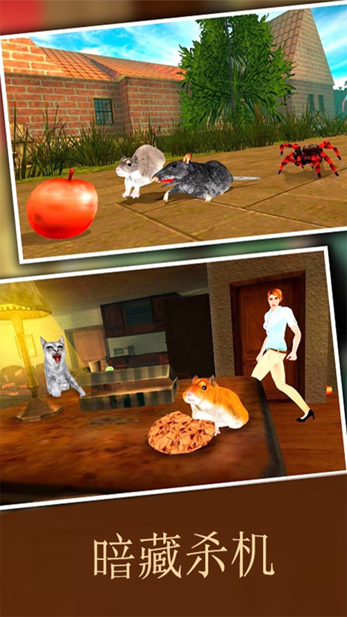 《疯狂地鼠3D模拟手机版》是一款非常有趣的新颖冒险手游,玩家扮演一只小地鼠,在人类家中偷食物并生存下来。游戏玩法丰富,可以挖洞安家、储存食物,通过不断冒险获取经验升级,解锁配偶和生育功能,体验组建家庭的乐趣。