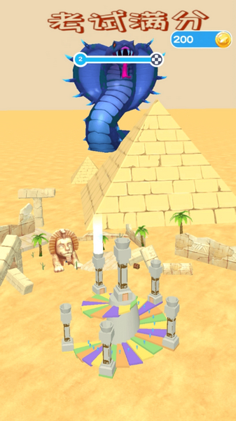 呆呆小兵,通过数字门召唤更多小兵,历经重重难关和挑战,最终达到山顶勇闯金字塔。据说进入金字塔的人会收到“蛇王”送出的祝福,而且每个人的祝福还不一样。赶快打开游戏看看你能收到什么祝福语。游戏还有白天和黑夜两个模式。在夜晚模式的时候19:00-06:59金字塔上方还会有UFO哟,它会吸走登顶的小兵。