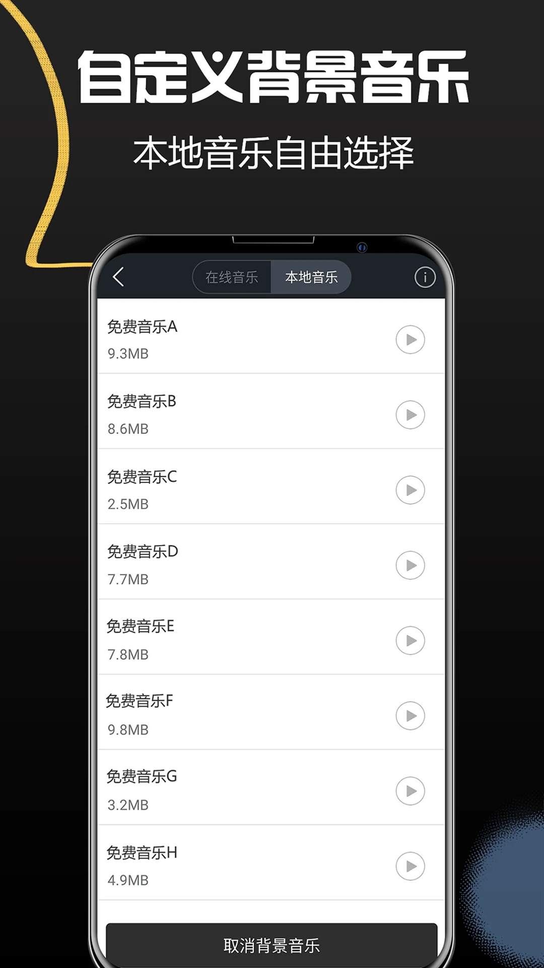 海量背景音乐,支持添加背景音,个性化定制背景音乐;