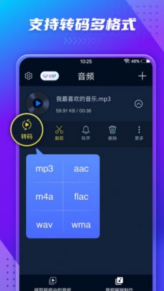 2、提供了多种音频格式间的相互转换,满足您对不同音频格式的需求。