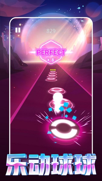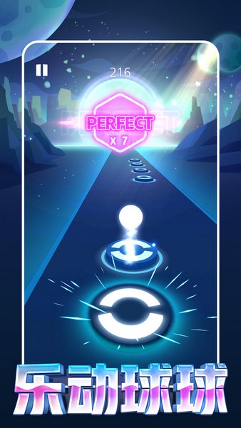 玩家需要根据音乐,控制可爱的球球,穿越在音符之间完成对音符的撞击