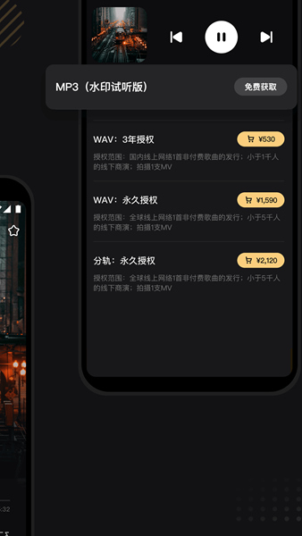 首先,海量的音乐资源是它的亮点之一,你可以轻松搜索到自己喜欢的音乐人或作品,甚至还能免费试听,决定是否购买。这对想尝试新风格但又不确定的人来说特别友好。此外,APP还提供法律协助服务,确保交易的合法性,这点对创作者来说非常关键。