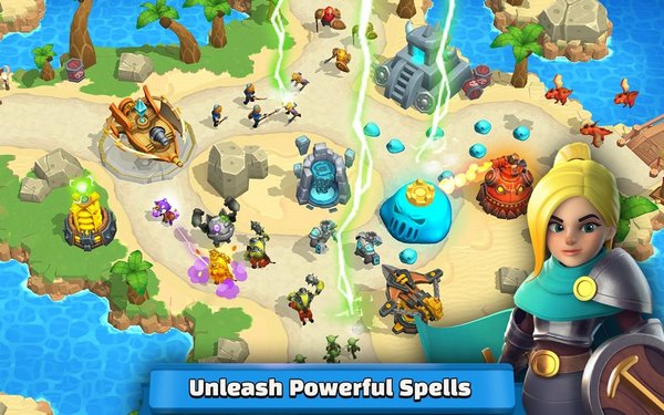 从丛林中的兽人部落,到炎热沙漠中的咆哮巨龙,在这款塔防角色扮演游戏中你可以建造各类防御,招募英雄,以及释放强大魔法来抵抗兽人,僵尸,黑暗精灵等怪物的入侵。