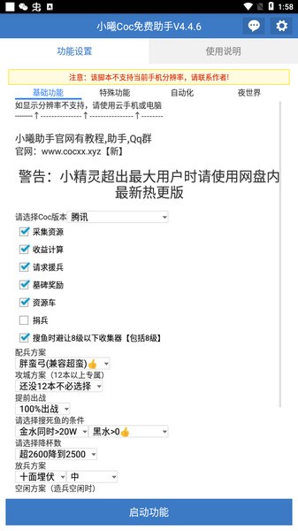 第四步:下载好小曦和游戏之后启动小曦Coc辅助,设置小曦辅助【选择你的版本就可以了,其他默认】,然后点启动,看图