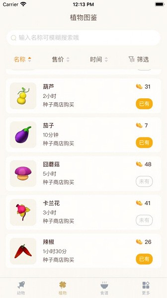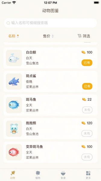 这里有全面的图鉴数据:动物图鉴、植物图鉴、食谱图鉴、家具图鉴、服饰图鉴,还有图鉴的详细信息哦~