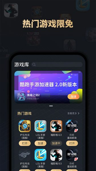 为各类全面屏设备做了兼容性和优化适配,加速器免费加速,多个游戏加速效果独立,使用无障碍;