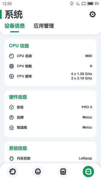 软件体积极小,可轻松查看手机软硬件信息;也可通过翻查CPU占用率来找出耗电应用
