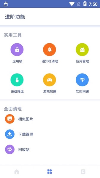 简洁强大的垃圾清理功能,清理手机内部的:系统垃圾、应用垃圾、无用安装包、卸载残留文件、广告文件。