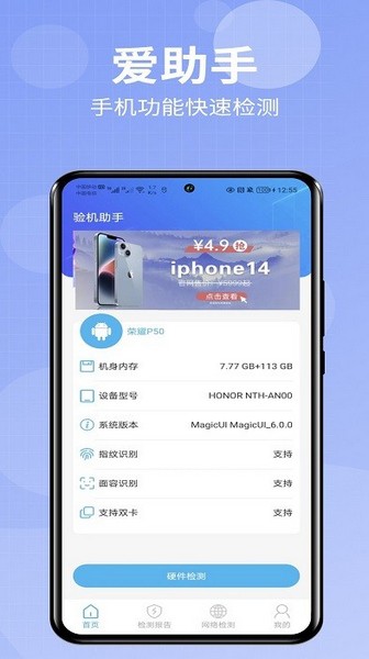 爱助手的验机功能更是让我惊喜连连。它能闪电般检测出手机的各项功能状态,就像一个专业的手机体检中心。每次检测后,详细报告都会呈现在我眼前,让我对手机的健康状况了如指掌。此外,它的全方位验机工具不仅全面,而且创新,比如一键清理内存功能,瞬间让我的手机焕发新生,远离卡顿的困扰。