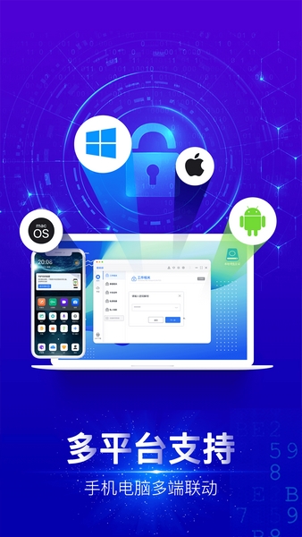 2、 「数据互通」:支持手机、电脑、平板等多端设备的文件加密解密,实现一次加密支持多端解密查看;