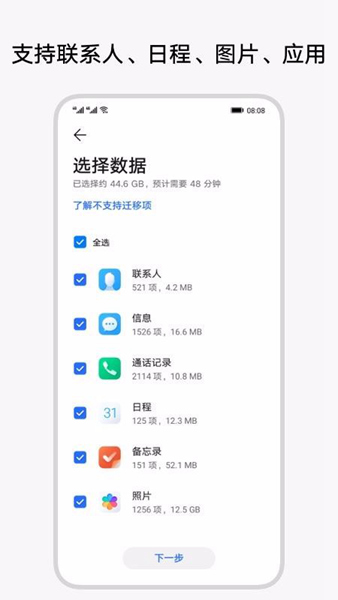 6、软件还支持海量数据迁移到荣耀手机,保护数据安全;