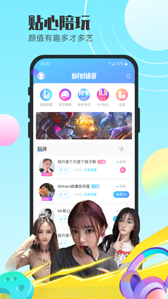 蝌蚪语音app是一个集游戏陪玩、语音交友和视频直播于一体的多功能社交平台。在这里,你可以找到高颜值的小哥哥小姐姐,还有技术超群的游戏大神,一起开黑上分或者观看他们的精彩表演。除了游戏陪练,这里还有各种才艺主播,比如唱歌跳舞的达人和搞笑的脱口秀演员,让你娱乐的同时还能放松心情。