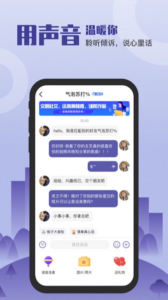 2、多元的社交操作,满足你多元的社交需求,支持文字、语音等多交流方式。