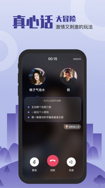 玩各种话题,满足需求,告别孤独。知道自己需要什么,想说就说,两个人一组说;