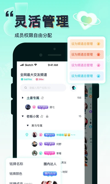1、用户可以创建频道,建立子频道,管理自己的频道,聚集志同道合的伙伴;