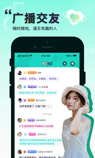 3、可以实时发送广播,发布交友内容,寻找合适的小伙伴,一起在yes社区上畅所欲言。