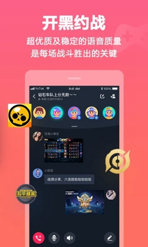 【开黑约战】超优质及稳定的语音质量,是每场战斗胜出的关键。