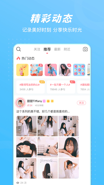 2、各类精彩动态都是用户自主发布的,帮助您认识喜欢的人