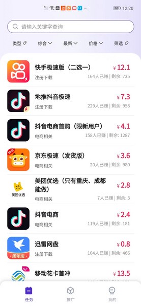 做任务就用任务多!手机上不但能划算,还能够帮您兼职赚钱!