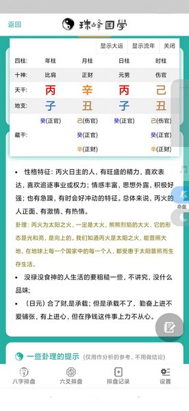 珠峰国学app是一款操作简单方便的排盘卜算软件。这款软件能够为用户提供精确的八字排盘以及六爻排盘工具,用户可以直接打开工具填写需要的信息来进行测算,得到自己需要的结果。同时,珠峰国学内还附带专业的测算结果解读服务,依据专业典籍来进行讲解,将复杂的结果以简洁的话语讲述,让初学者也能够顺利地使用排盘进行测算。