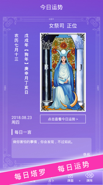 塔罗牌占卜支持星座八字算命,生辰八字,十二星座运势,紫微斗数,八卦易学,手相面相相学解梦一样,祝你掌握自己的命运!