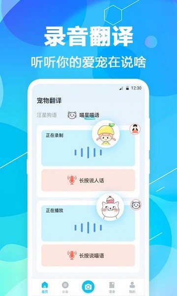 - 将人声翻译成猫语,动物模拟器将叫声语言高度真实;