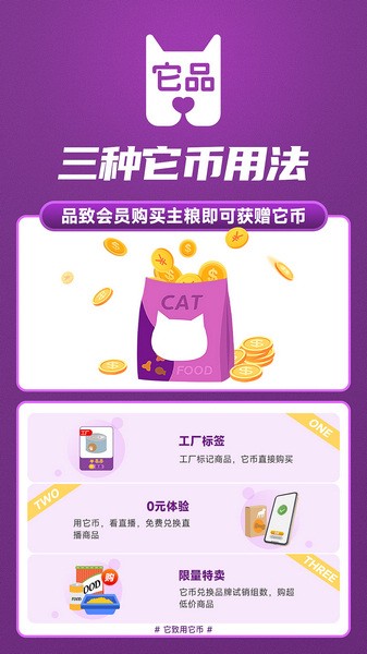 它品是一款主打宠物用品在线购物的软件,若是家中有爱宠需要饲养,那么不如使用这款软件购买宠物用品吧!其汇集了海量优质产品可供用户进行挑选,且种类相当丰富,囊括了饲料、护理、零食等应有尽有,满足不同用户的使用需求!在线一键下单,轻松采购,送货上门!