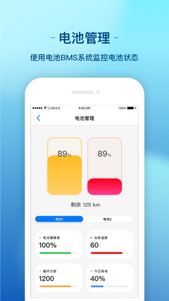 1.车况:精准电量.预估续航.车辆定位.车身状态.骑行轨迹等;