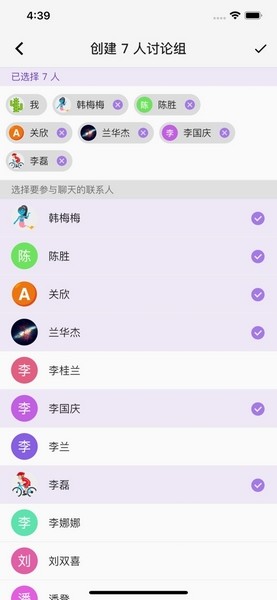 支持在一对一通话或讨论组中进行音视频聊天,并可自行选择参与人员。