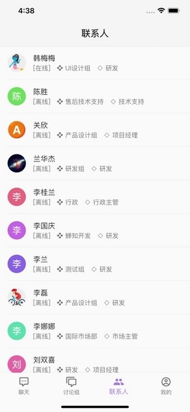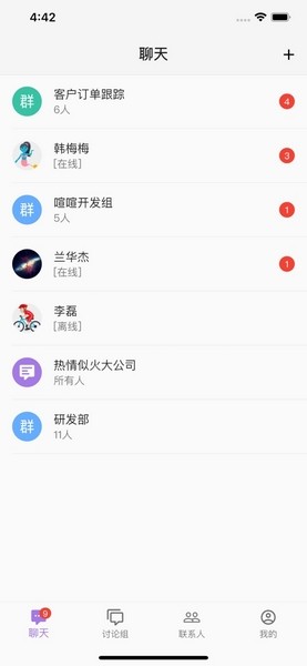 支持多人聊天的功能,可将讨论组公开,任何成员都可以自由加入。